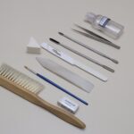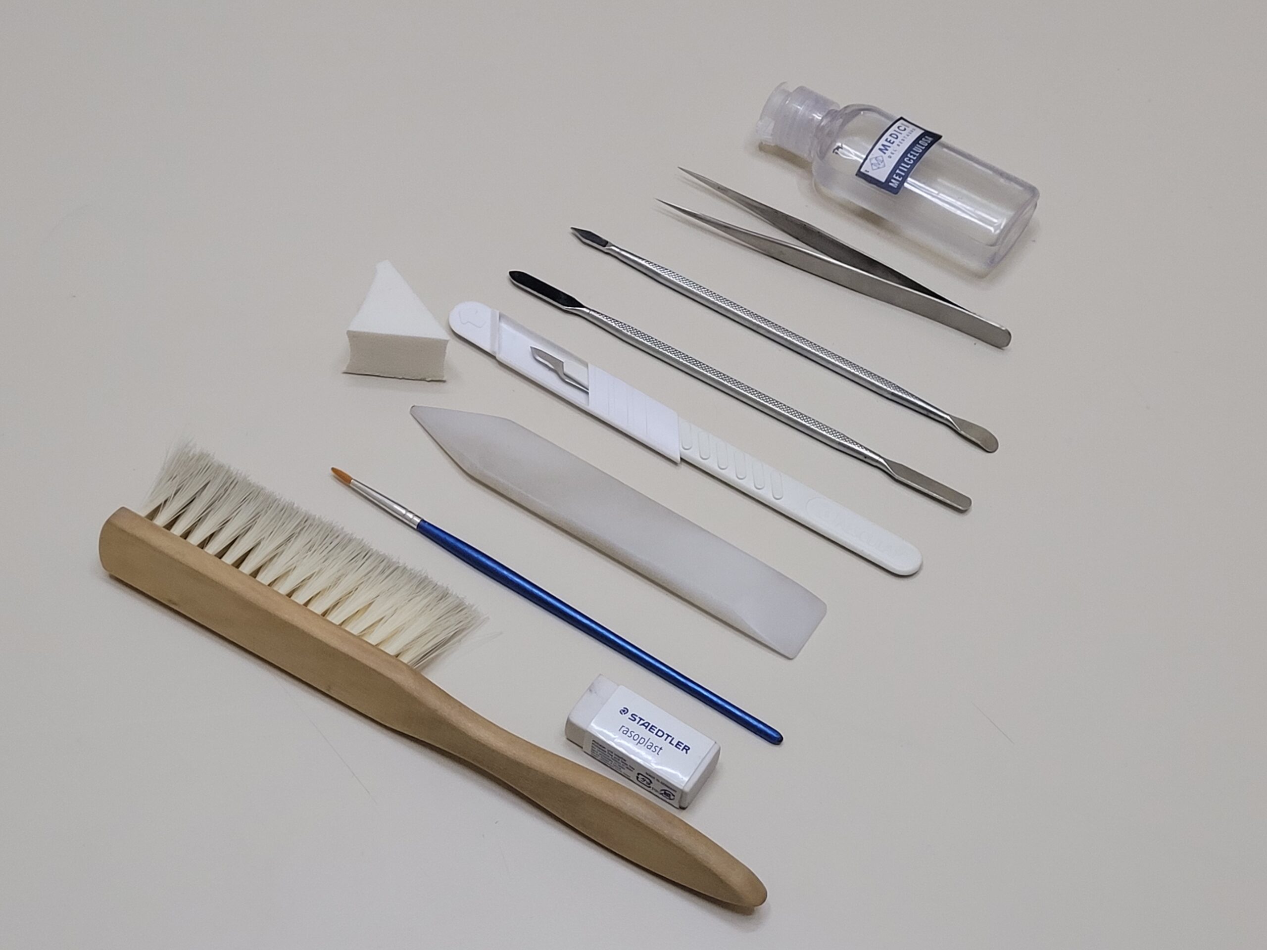 - Limpieza mecánica en seco mediante pinceleta de cerda sintética suave.