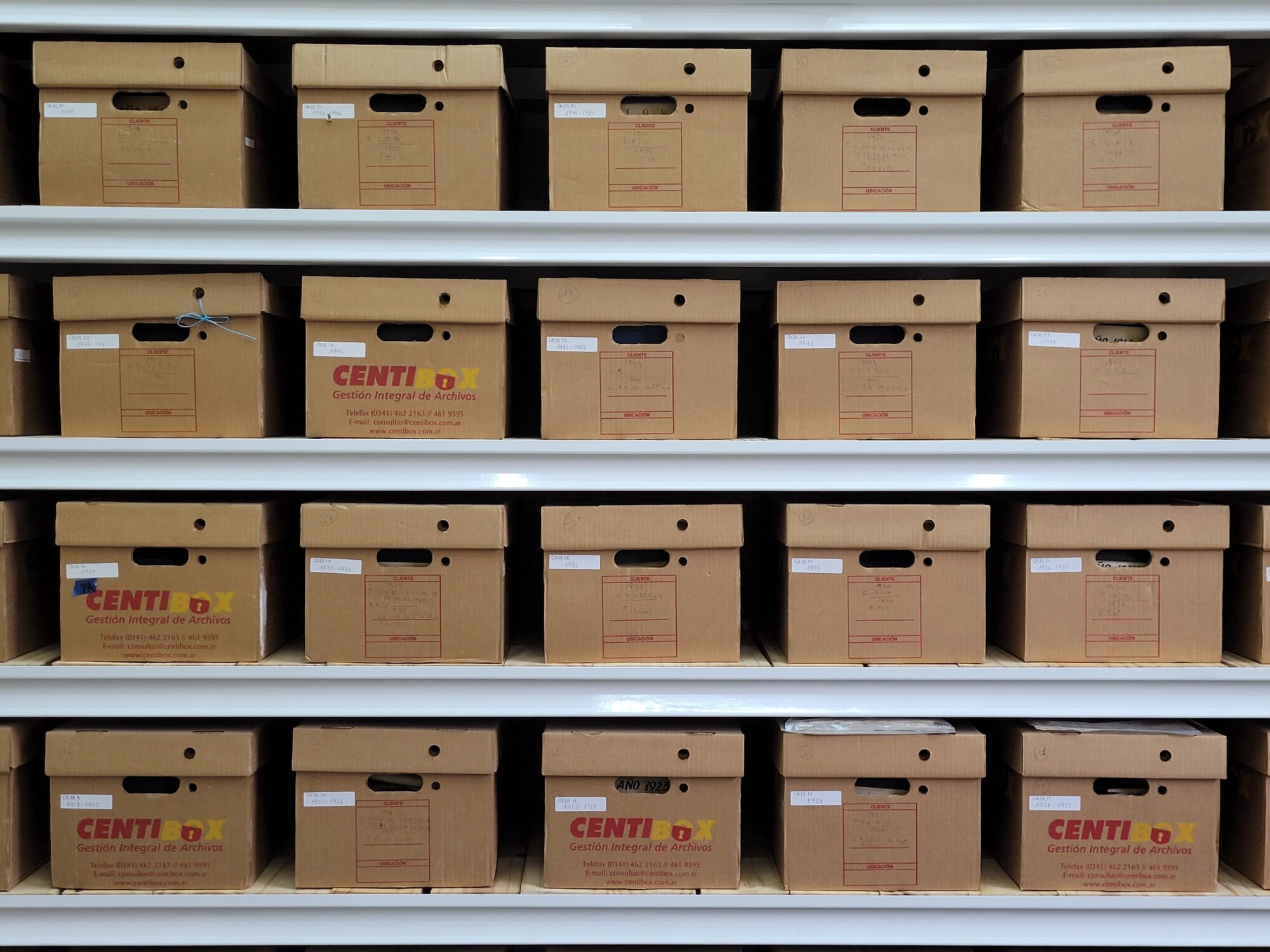 - Almacenamiento: Nivel 1: Caja contenedora de cartón – Nivel 2: Caja de archivo de cartón – Nivel 3: Estantería metálica.